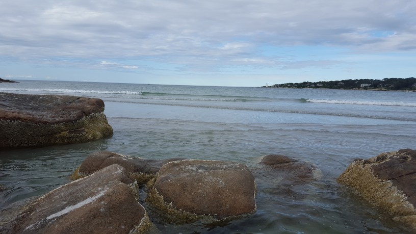 Yesterday I went to Wingaersheek Beach in Gloucester to read, swim, and enjoy the sunset. Arriving at low tide, I walked out past some lovely rock formations on the way to the ocean. Yet what goes around comes around, and the tide began to steadily come in as the evening wore on.
