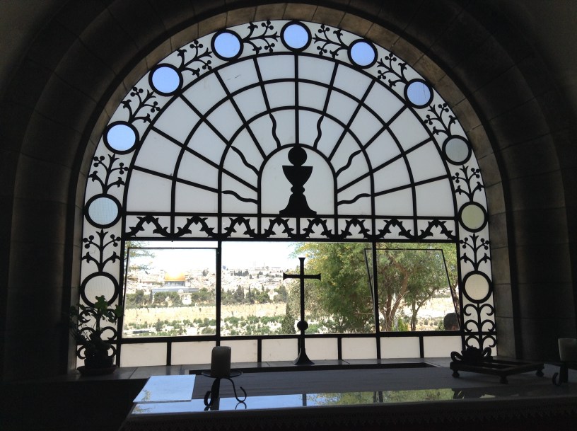 From my time in the Holy Land I learned about (and visited) Dominus Flevit which means “the Lord wept”. It’s a church on the Mount of Olives that commemorates Jesus weeping over Jerusalem. The church is shaped like a tear drop and there is a large plate glass window behind the altar. When one sits inside the chapel praying, the view behind the altar is a panoramic picture of Jerusalem. The city that was near and dear to the heart of Jesus, the city where he journeyed to celebrate the High Holy Days. The city where he was both crucified and resurrected and where his followers somehow carried on the faith despite the fearful times in which they were living. As Jerome Murphy-O’Connor explains, “Medieval pilgrims were the first to designate a rock on the Mount of Olives as the place where Jesus wept over Jerusalem.”[3]