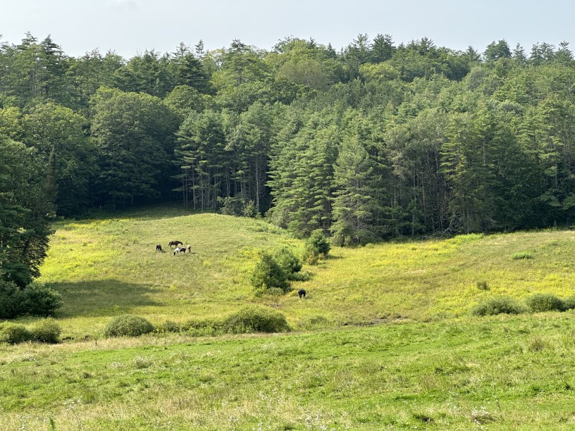 Vermont is mostly forested and country drives from place to place are quite serene. The landscape—with farms and log cabins nestled into mountain valleys, with horses and cows roaming the slopes—is like something out of a Bob Ross painting. (And oh do I love Bob Ross and The Joy of Painting!)