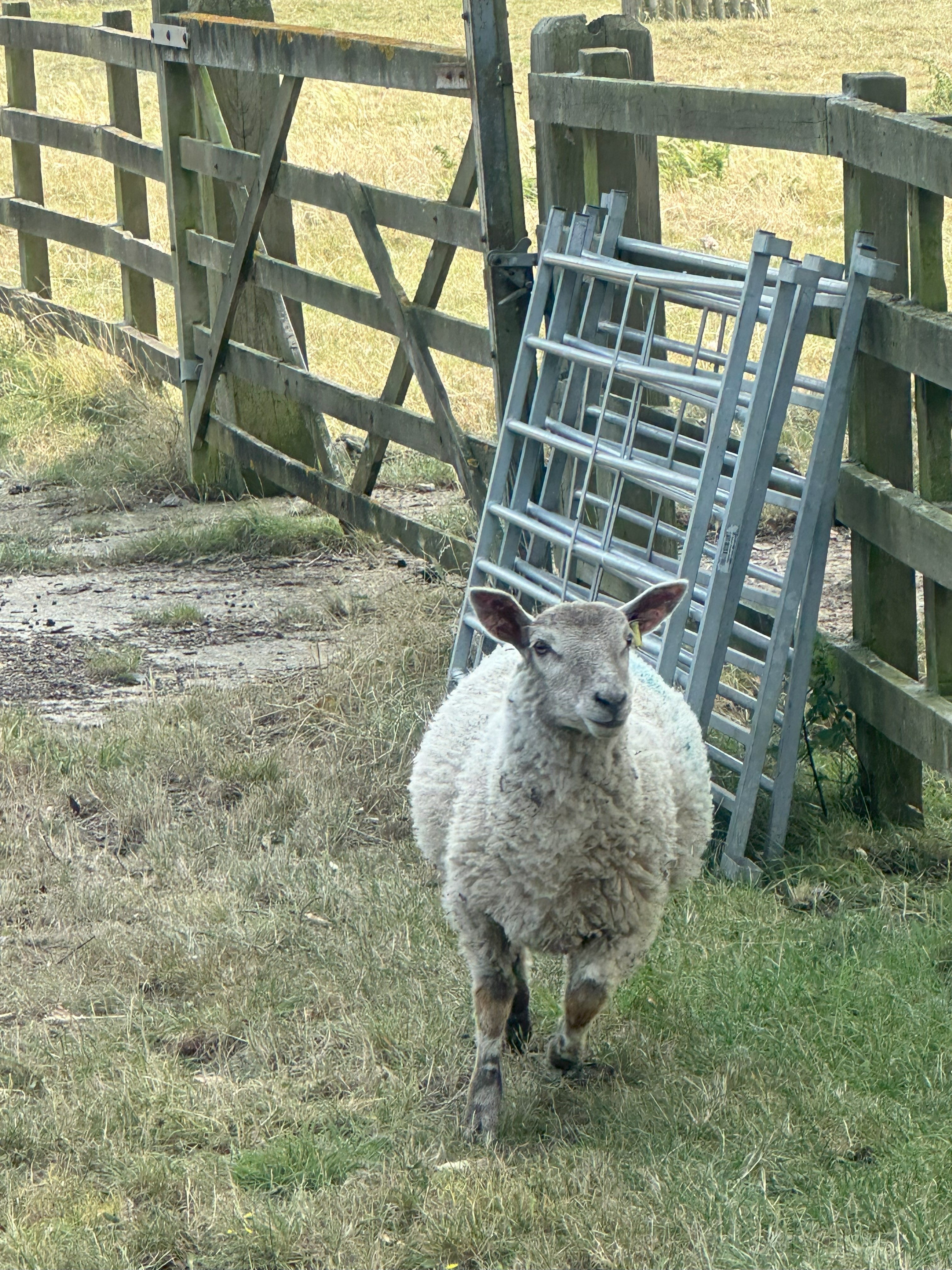 It reminds me of something that happened when my best friend Emilia and I were visiting England. We had stayed in a cottage on a working farm in Middleton Stoney near Oxford. Our Airbnb hosts invited us to walk around the farm if we wanted and included a map of paths on the property. Em and I went walking one day on the farm, securing the fence behind us. We moved from observing the chickens to the cows to some of the sheep when all of a sudden we came upon a single sheep on the path right in front of us.